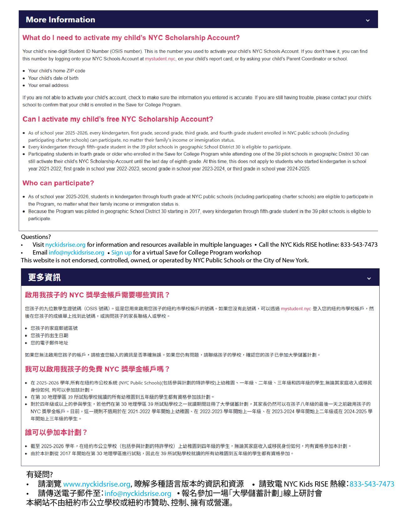 Is your child in kindergarten, 1st, 2nd, 3rd, or 4th grade at @nycschools? It’s time to activate their FREE NYC Scholarship Account for college + career training to get more $$$ for their future: nyckidsrise.org/activate @nyckidsrise #SaveForCollege